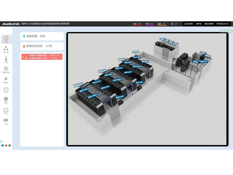 用戶介紹:       該檢察院為江蘇省揚(yáng)州市境內(nèi)的司法機(jī)關(guān)。 解決方案:      近期有幸為江蘇省某市檢察院提供三套安德力士品牌微模塊機(jī)房設(shè)備,涉及系統(tǒng)有:UPS不間斷電源、精密空調(diào)、機(jī)柜、配電、動(dòng)力環(huán)境監(jiān)控等系統(tǒng);涉及主要設(shè)備有:UPS主機(jī)(30KVA、40KVA、300KVA)、鉛酸蓄電池(100AH64節(jié)、200AH128節(jié)、250AH320節(jié))、精密空調(diào)(行級(jí)25KW12臺(tái)、基站12.5KW4臺(tái))、機(jī)柜51套,現(xiàn)已全部安裝調(diào)試完成。      微模塊數(shù)據(jù)中心的主要優(yōu)勢(shì)      1、快速部署、縮短建設(shè)周期      微模塊數(shù)據(jù)中心加快規(guī)劃與設(shè)計(jì)速度,可根據(jù)設(shè)計(jì)目標(biāo)以合理的方式配置系統(tǒng)結(jié)構(gòu),微模塊批量生產(chǎn)可以實(shí)現(xiàn)現(xiàn)貨供應(yīng),因而提高了交貨速度;標(biāo)準(zhǔn)化的連接方式可減少現(xiàn)場(chǎng)配置與連接的工作量,加快安裝速度;微模塊數(shù)據(jù)中心建設(shè)周期可大大縮短,傳統(tǒng)數(shù)據(jù)中心實(shí)施階段需要7-8月,采用微模塊建設(shè)縮短至2-3個(gè)月。      2、方便擴(kuò)展、分期建設(shè)      采用微模塊的架構(gòu),數(shù)據(jù)中心可以逐步增加,因而可使從1個(gè)微模塊到幾十個(gè)微模塊根據(jù)需求分期建設(shè)。微模塊數(shù)據(jù)中心方案顯著降低了數(shù)據(jù)中心在使用壽命期間的成本。      3、標(biāo)準(zhǔn)模塊、穩(wěn)定可靠      微模塊數(shù)據(jù)中心采用模塊化、標(biāo)準(zhǔn)化和高整合設(shè)計(jì),使得整個(gè)系統(tǒng)穩(wěn)定度高。同時(shí),微模塊數(shù)據(jù)中心可依據(jù)客戶需求,在電力備援方案上提供N、N+1、2N等配置方案。      4、綠色、節(jié)能          數(shù)據(jù)中心在使用壽命期間的電力成本是TC(總擁有成本)中的一項(xiàng)。相比傳統(tǒng)機(jī)房,微模塊數(shù)據(jù)中心制冷效率提升。微模塊數(shù)據(jù)中心結(jié)合水冷系統(tǒng)、自然冷卻系統(tǒng),PUE降低。      5、智能管理、高效運(yùn)營(yíng)      智能的管理系統(tǒng)能夠幫助客戶節(jié)能降耗,實(shí)現(xiàn)數(shù)據(jù)機(jī)房多層級(jí)、精細(xì)化能耗管理,通過(guò)多種報(bào)表精確定位能源額外損耗點(diǎn)。基于大數(shù)據(jù)分析,輸出節(jié)能優(yōu)化方案,構(gòu)建綠色數(shù)據(jù)機(jī)房。資產(chǎn)管理是對(duì)于全網(wǎng)資產(chǎn)的生命周期進(jìn)行管理實(shí)現(xiàn)資產(chǎn)信息的閉環(huán)管理,保證數(shù)據(jù)及時(shí)刷新,及時(shí)管理。同時(shí)幫助用戶制定資產(chǎn)維護(hù)計(jì)劃,在維護(hù)計(jì)劃內(nèi)幫助客戶實(shí)現(xiàn)主動(dòng)預(yù)警,同時(shí)可動(dòng)態(tài)調(diào)整維護(hù)計(jì)劃,按照當(dāng)前實(shí)際情況輸出優(yōu)化方案,構(gòu)建資產(chǎn)管理功能。